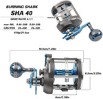 SHA40 Ball Bearing: 6+1 BB Gear Ratio: 4.1:1 Line Capacity(mm/M): 0.45/399 0.5/295 Line Capacity(LBS/YDS): 20/430 25/320 Weight: Approx. 1.4 lb / 640g Max. Drag: 40 lb STC30 Ball Bearing:...