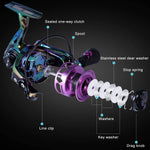 - LIGHT WEIGHT – SC spinning fishing reel has a lightweight, yet very strong graphite frame. Hollow frame design and computer balancing system combined with high performance and light weight for long time fishing. The spool is a machined of aircraft grade aluminum to reduce weight and deliver long, accurate casts.