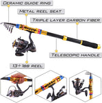 - Light, Strong, and Highly Sensitive, fishing rod Full kit is special made for novice, including necessary accessories for fishing. high density Carbon fiber mixed with fiberglass make your fishing pole hard & durable.