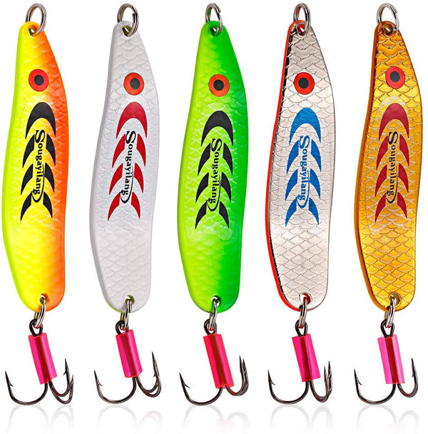 - BEST CHOICE: Sougayilang fishing lures are designed to be trolled, cast, drifted or jigged. Balanced wobble and flash make them perfect choice whether you fish for pike, salmon, trout, walleyes or panfish.