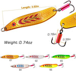- ACTION: This fishing lures can be dressed with a tail grub, it action increases when the hook is tipped, unlike many other light spoons.